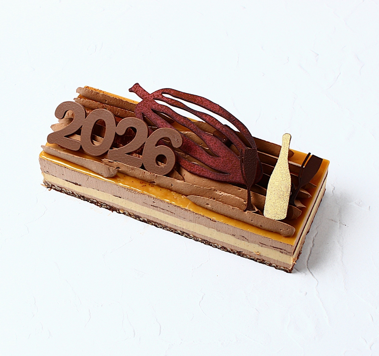 Le Kaori se transforme pour les fêtes ! Mousse au chocolat au lait à un crémeux caramel à la fleur de sel, le tout sur un biscuit chocolat moelleux et un croustillant au grué de cacao et riz soufflé.